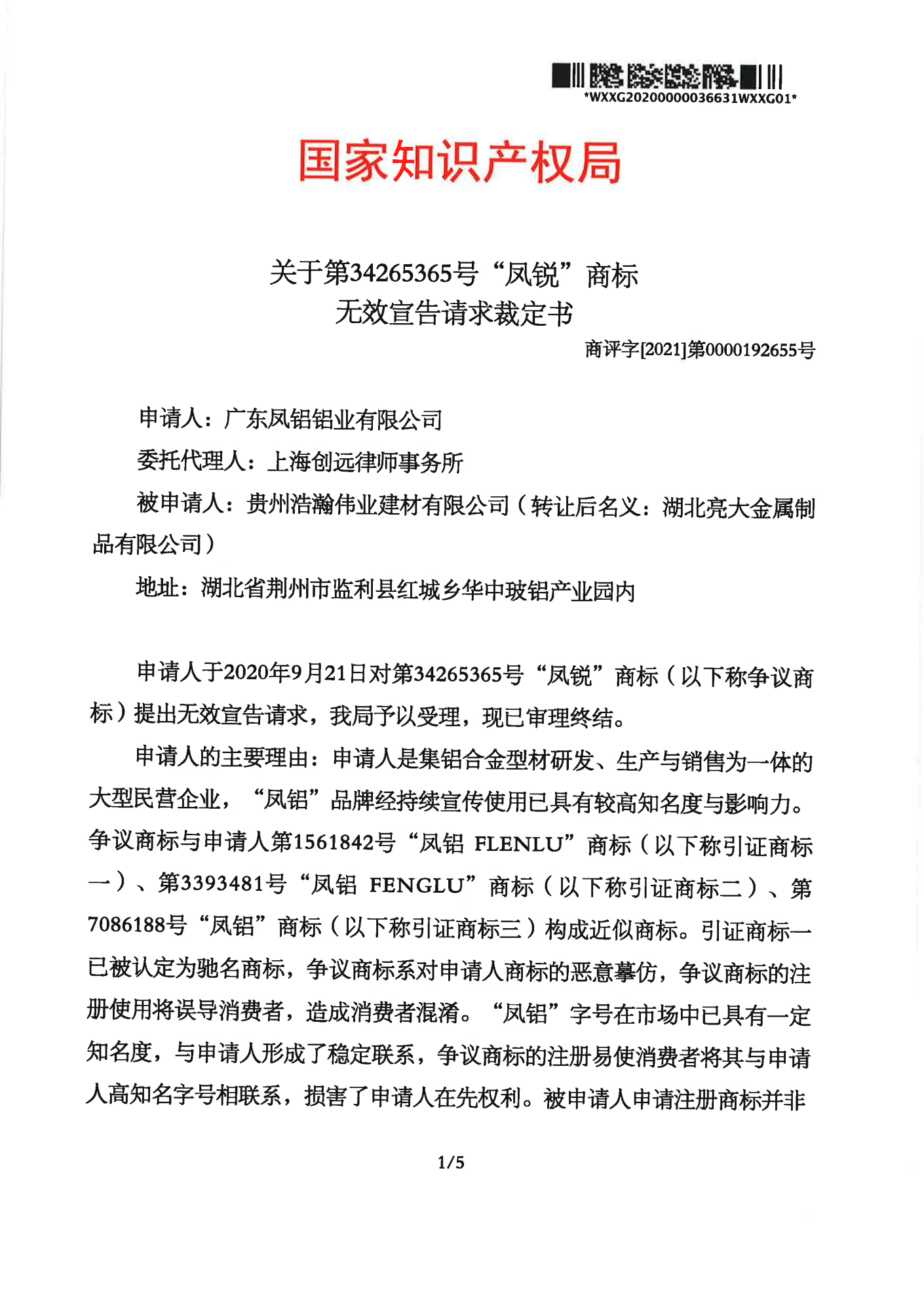 莆田辉知队 | 国家知识产权局:“凤锐”商标无效