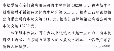 莆田凤铝系列维权案:诉辉煌公司等四被告,法院判赔250余万